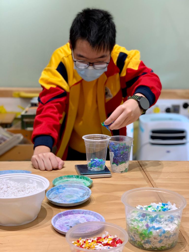 1. 與機構「軸物行者」於綠在元朗舉行塑膠再造體驗展,不少學生及家長到場支持及參與